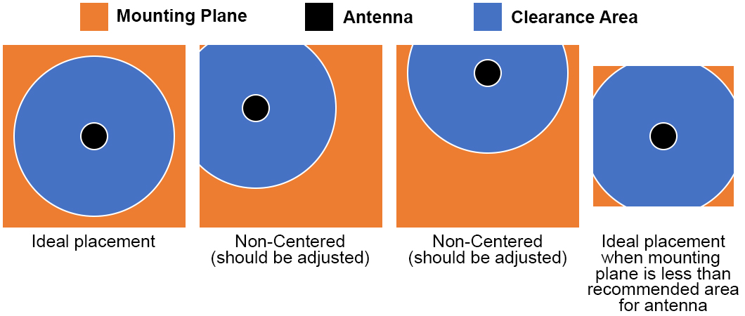 performance of the cellular communication with the device. The ideal scenario is to install an antenna with a magnetic base on an open metallic plane, with clear surroundings at least 8” around the antenna, including the distance between the top of the antenna and any ceiling.