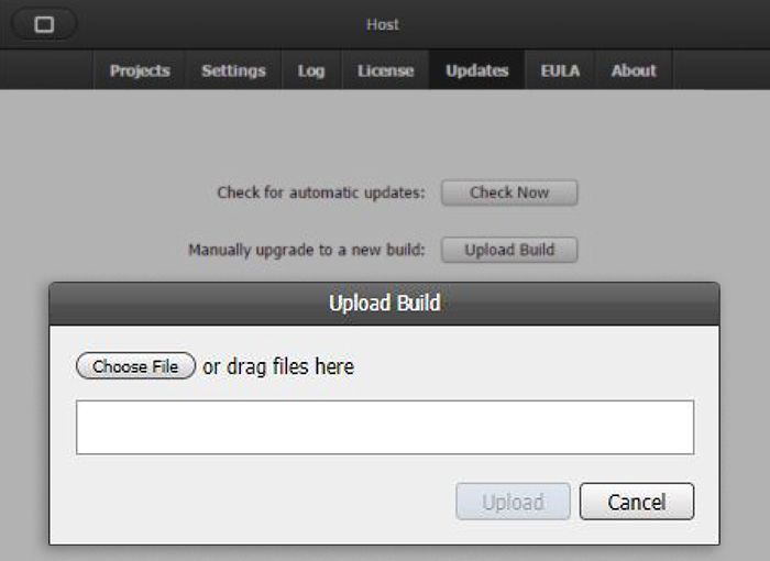 you are upgrading from r2 to r3, you must ensure that your device is at the last r2 release (2.1.15.7).1. Go to Host App and select the Updates tab, then press the ‘Upload Build’ button and choose the file.