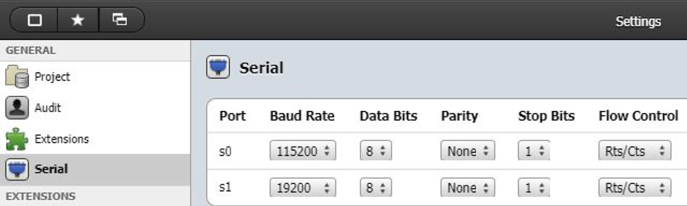 - Serial – Record and serial ports configured like s1 for modbus serial on the RS485 port.