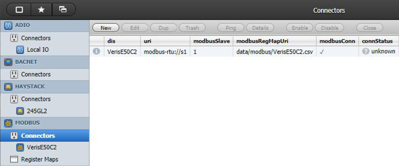 - Modbus Serial Connector – Verify that your modbus connector, Register Maps and Points are migrated with serial port config.