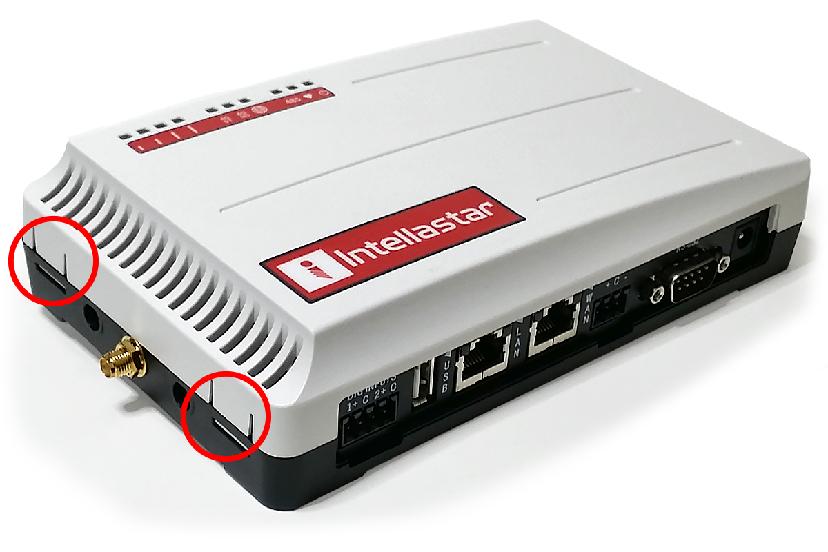 1. Open the case by pressing down on the release tabs simultaneously on each side of the modem, then lift and remove the top casing.
