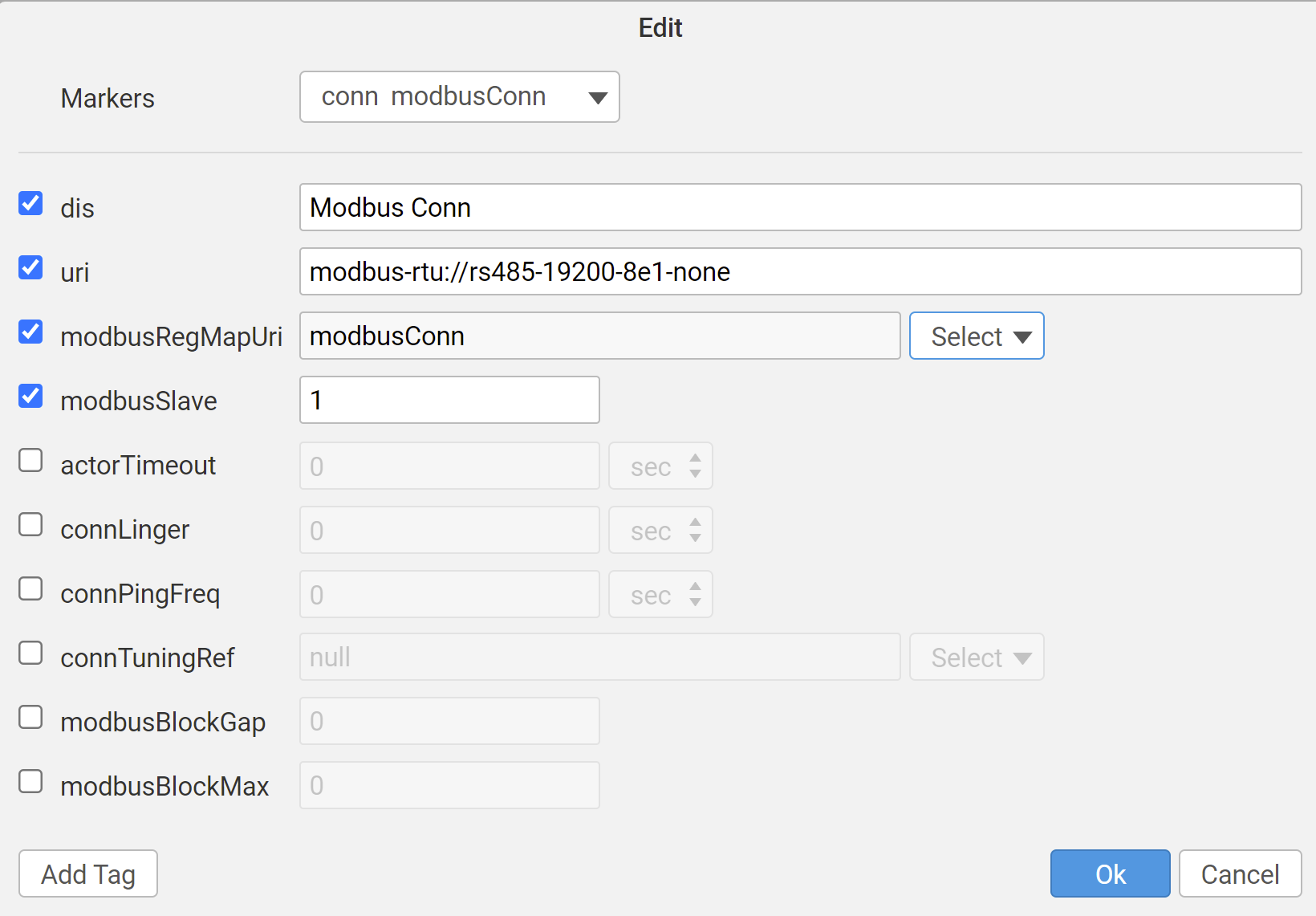 - modbusSlave - Modbus Slave – This is the Modbus Device address on the serial network, such as 1, or 3.