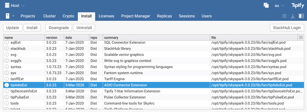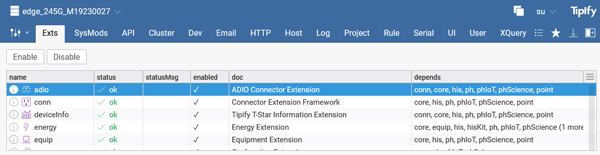 Note: The "tipAdioExt" should come preinstalled in your version of Skyspark hosted by Tipify on the T-Star 245.