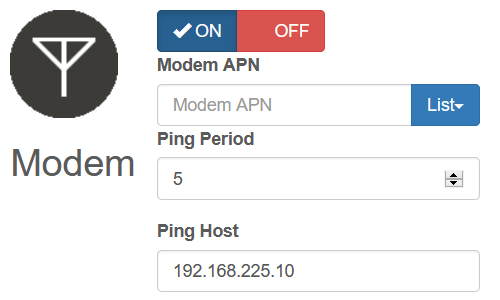 Modem lets you configure Modem APN, Ping Period and Ping Host based on your modem.