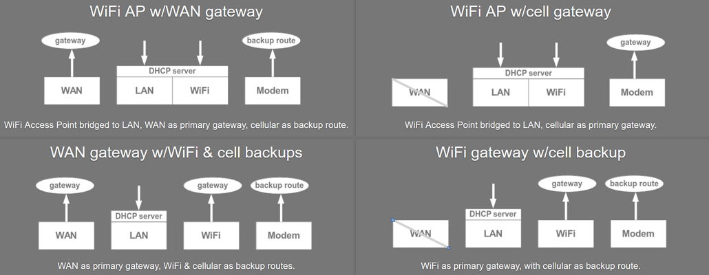 | 1. WAN: DHCP 2. WiFi: Client 3. Uplink: WAN/WiFi/Modem